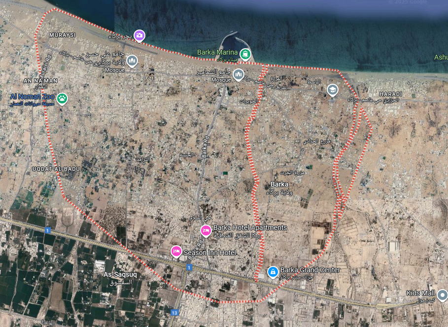 موقعیت ساحلی برکا در استان باطنه، فضایی آرامتر از مرکز مسقط را ارائه میدهد، با سواحل شنی، قلعه تاریخی برکا و دسترسی آخر هفته به چشمههای آب گرم نخال. این قطعه زمین به مساحت 863 متر مربع برای یک خانه خانوادگی یا یک جفت واحد مسکونی کوچک مناسب است. قیمتهای زمین مقرون به صرفه در این شهر، خانوادههای عمان و بازنشستگان را جذب میکند که به دنبال ساخت خانه خارج از بازارهای پرمیوم پایتخت هستند. زیرساختهای رو به رشد برکا شامل یک بازار محلی، مدارس و امکانات بهداشتی است. فرودگاه بینالمللی مسقط تقریباً 60 دقیقه با آن فاصله دارد و این را به یک انتخاب عملی برای کسانی تبدیل میکند که به دسترسی روزانه به شهر نیاز ندارند اما میخواهند در ساحل زندگی کنند، آن هم با هزینه بسیار کمتری نسبت به مسقط.
