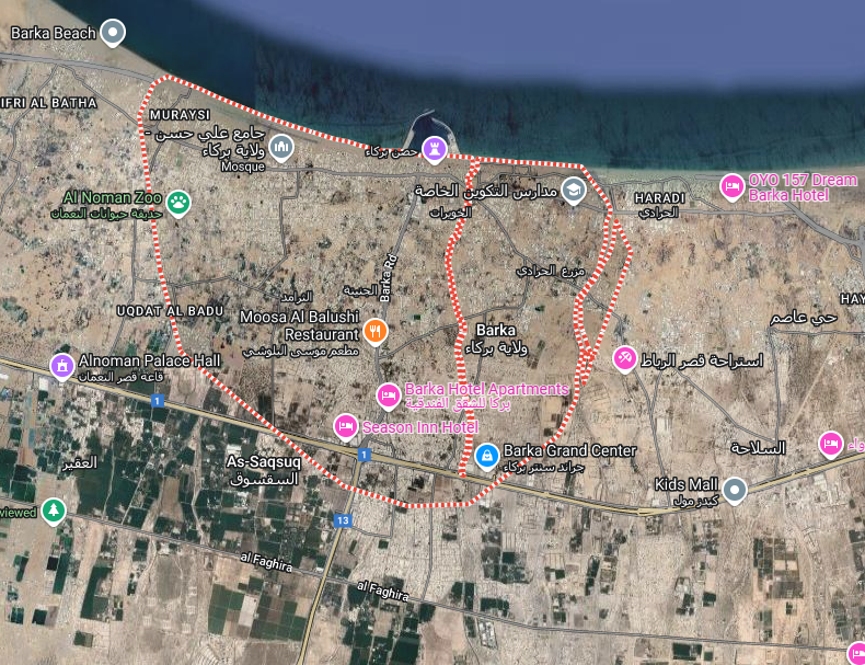 This generous 16,198 square metre plot sits in Barka, a coastal town known for its sandy beaches, traditional souq, and proximity to Nakhal hot springs. The land offers significant development potential, whether for a residential compound, commercial project, or mixed-use venture. Barka's position along the Batinah coast provides a quieter alternative to central Muscat while maintaining highway connectivity. The plot's size makes it well suited for investors or developers looking at the growing demand for housing outside the capital. Barka Fort and the local souq are nearby, and Muscat International Airport is approximately 60 minutes by car.